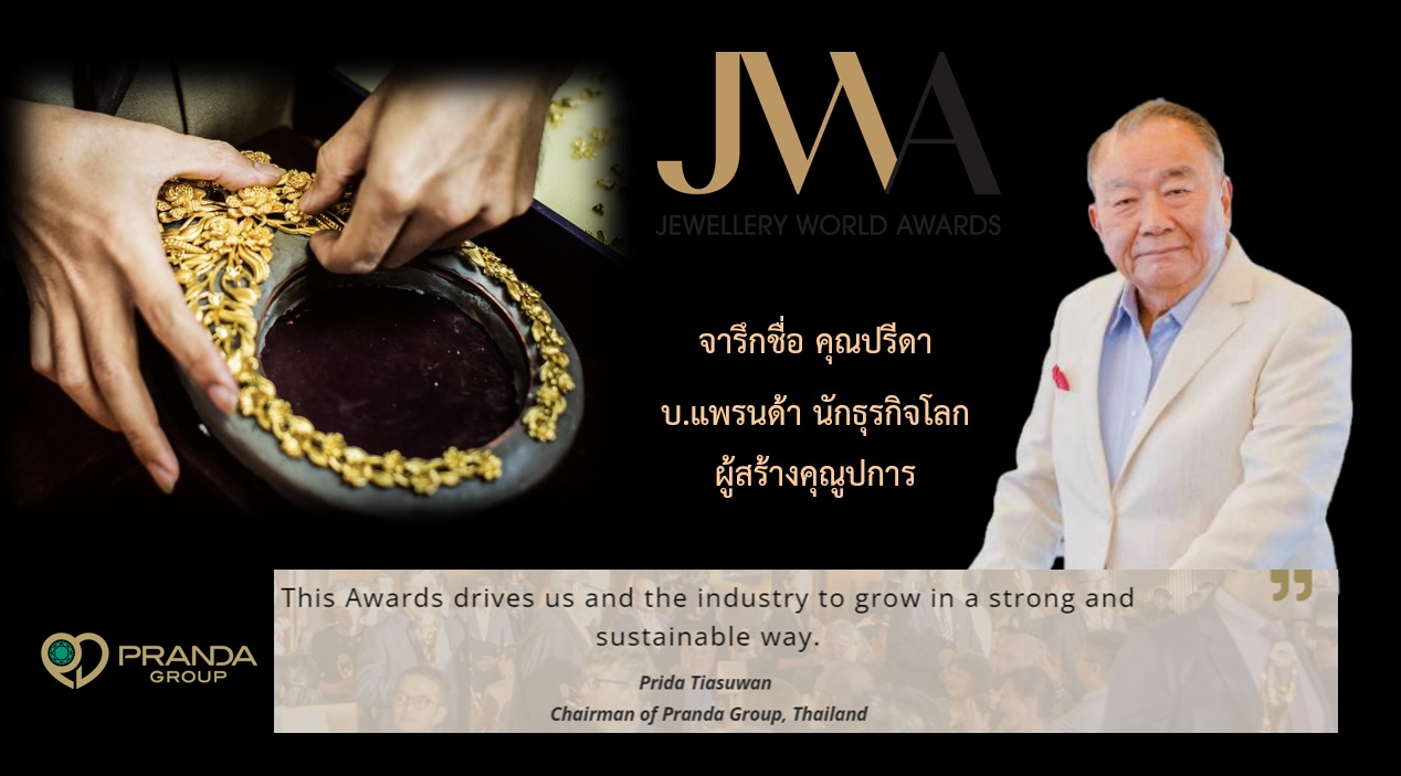 “คุณปรีดา เตียสุวรรณ์” ประธานที่ปรึกษากรรมการบริษัท และผู้ก่อตั้งบริษัท แพรนด้า จิวเวลรี่ จำกัด (มหาชน) เข้ารับรางวัล 1 ใน 40 นักธุรกิจโลกผู้สร้างคุณูปการให้กับวงการธุรกิจอัญมณีและเครื่องประดับในระดับสากล ในงาน Celebrating 40 Extraordinary Years ที่จัดขึ้นโดยองค์กร Jewelry & Gem World ณ เขตบริหารพิเศษฮ่องกง