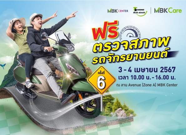 จัดกิจกรรม “ที ลีสซิ่ง เปื้อนยิ้ม เพิ่มห่วงใย ตรวจสภาพรถจักรยานยนต์ ฟรี ครั้งที่ 6” เปิดให้บริการเปลี่ยนถ่ายน้ำมันเครื่อง ตรวจสภาพรถจักรยานยนต์ โดยช่างชำนาญการ และตรวจควันดำเครื่องยนต์ ป้องกันฝุ่น PM2.5 สำหรับรถยนต์และรถจักรยานยนต์ โดยกรมควบคุมมลพิษ ให้กับประชาชนก่อนเดินทางในช่วงเทศกาล ฟรี! สำหรับผู้ที่สนใจสามารถนำรถจักรยานยนต์ ขนาดเครื่องยนต์ไม่เกิน 300 ซีซี. เข้ามาลงทะเบียนและตรวจเช็คสภาพก่อนเดินทางได้ทันที ในวันพุธที่ 3 – วันพฤหัสบดีที่ 4 เมษายน 2567 เวลา 10.00 น. – 16.00 น. บริเวณลาน อเวนิว โซน A ชั้น G ศูนย์การค้า เอ็ม บี เค เซ็นเตอร์