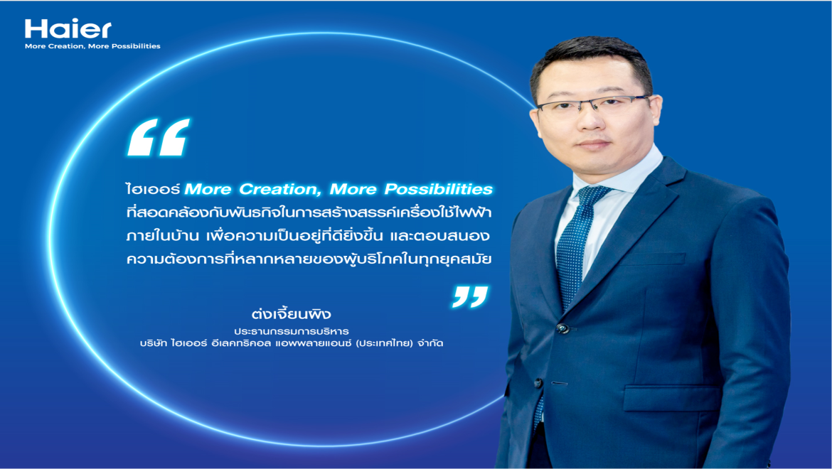 ไฮเออร์ ผู้นำด้านผลิตภัณฑ์และนวัตกรรมเครื่องใช้ไฟฟ้าระดับโลกและแบรนด์เครื่องใช้ไฟฟ้าอันดับ 1 ของโลกติดต่อกัน 15 ปีซ้อน เร่งเครื่องดำเนินธุรกิจตามแผนกลยุทธ์ ประกาศเปลี่ยนสโลแกนใหม่อย่างเป็นทางการภายใต้คอนเซ็ปต์ “More Creation, More Possibilities” นับเป็นการปรับการสื่อสารด้านแบรนด์ดิ้งครั้งใหญ่ เพื่อยกระดับภาพลักษณ์ และนำเสนอตัวตนของแบรนด์ที่ชัดเจน อีกทั้งยังเข้าถึงกลุ่มเป้าหมายได้มากขึ้น สะท้อนความเป็นผู้นำการสร้างสรรค์นวัตกรรมที่มีประสิทธิภาพ และการสร้างคุณค่าในทุกความเป็นไปได้ให้เหนือกว่าที่เคย เพื่อยกระดับการมอบประสบการณ์ที่ดีให้กับลูกค้าอย่างต่อเนื่อง