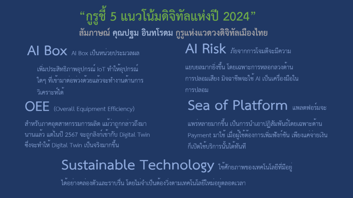 คุณปฐม ได้คาดการณ์แนวโน้มที่จะบูมมากๆ ในปี 2567 ไว้ 5 ประการ ดังนี้