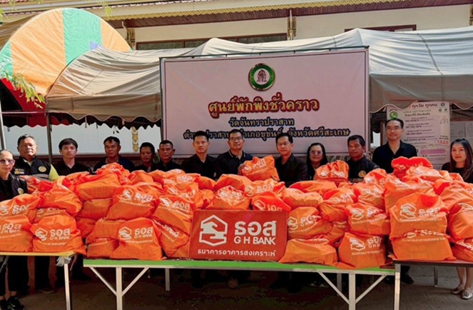 โดยเฉพาะกลุ่มผู้มีรายได้น้อยและปานกลางให้สามารถมีที่อยู่อาศัยเป็นของตนเอง มาตลอดระยะเวลากว่า 72 ปี ตามพันธกิจ “ทำให้คนไทยมีบ้าน” ทั้งนี้การมอบถุงยังชีพดังกล่าว จัดขึ้น ณ ศูนย์พักพิงชั่วคราววัดจันทราปราสาท อำเภอขุขันธ์ จังหวัดศรีสะเกษ