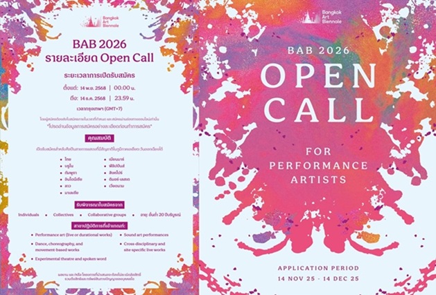ในปีนี้ “บางกอก อาร์ต เบียนนาเล่ 2026” ได้เปิดรับสมัครศิลปินจากทั่วโลกเข้าร่วมเสนอผลงาน โดยให้ความสำคัญเป็นพิเศษกับ “ศิลปะการแสดง (Performance Art)” เพื่อสร้างประสบการณ์ร่วมสมัยที่มีพลังและเข้าถึงผู้ชมหลากหลายกลุ่ม ได้แก่ ศิลปะแสดงสด (Live Art) การเคลื่อนไหว (Movement) ศิลปะเสียง (Sound)งานที่เกิดจากการมีส่วนร่วมของผู้ชม (Participatory Practice)