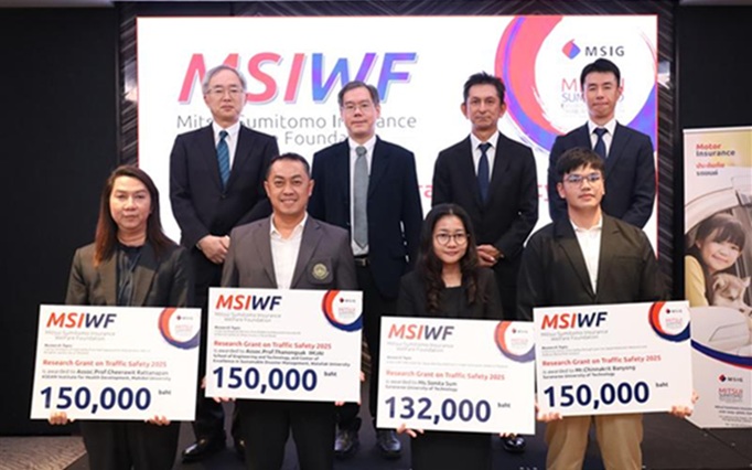 มูลนิธิ มิตซุย สุมิโตโม อินชัวรันซ์ เวลแฟร์ ฟาวเดชั่น และกลุ่มผู้บริหารบริษัท มิตซุย สุมิโตโม อินชัวรันซ์ จำกัด สาขาประเทศไทย ได้จัดงานมอบทุนวิจัยแก่นักวิจัยไทย จำนวน 4 โครงการ เป็นจำนวนเงินรวม 582,000 บาท เพื่อสนับสนุนการวิจัยเชิงวิชาการที่เกี่ยวข้องกับการพัฒนาความปลอดภัยบนท้องถนนของประเทศไทยประจำปี 2568 โดยในงานมีการนำเสนอผลงานของนักวิจัยในปีที่ผ่านมาและส่งมอบทุนวิจัยให้กับนักวิจัยที่ได้รับทุนในปีนี้ โดยพิธีจัดขึ้น ณ ห้องประชุม Ambassador I ชั้น 8 โรงแรม  Ascott Embassy Sathorn Bangkok