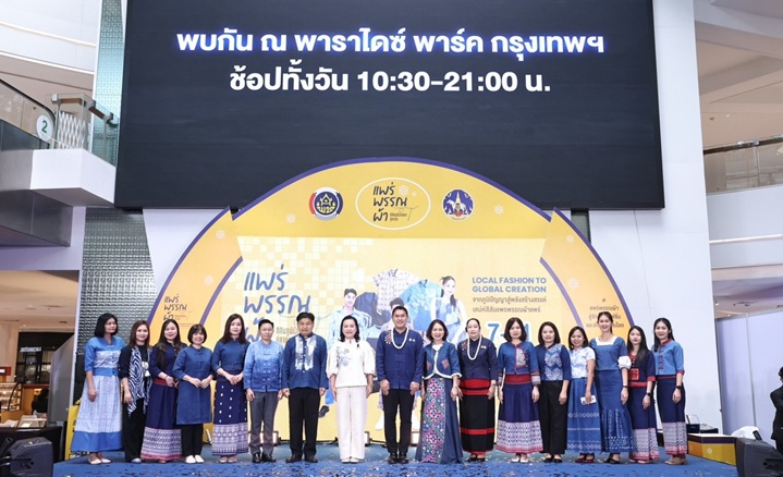 พาราไดซ์ พาร์ค ศูนย์การค้าในเครือเอ็ม บี เคเดินหน้าสนับสนุนและส่งเสริมผู้ประกอบการท้องถิ่น พร้อมผลักดันสินค้าภูมิปัญญาไทยสู่ตลาดในเมือง จัดงาน “แพร่พรรณผ้า สีสันภูมิปัญญาสู่สากล ครั้งที่ 5” โดยพิธีเปิดได้รับเกียรติจาก นายคุณากร คชหิรัญ รองผู้ว่าราชการจังหวัดแพร่ (ที่ 9 จากซ้าย) ให้เกียรติมาประธานในพิธีเปิดงาน