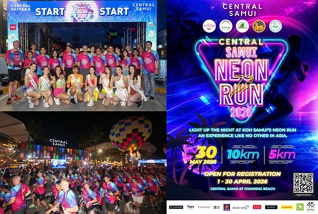 บริษัท เซ็นทรัลพัฒนา จำกัด (มหาชน) ผู้นำอสังหาริมทรัพย์ไทยเพื่อความยั่งยืน และผู้บริหารศูนย์การค้าเซ็นทรัล สมุย ผนึกกำลังพันธมิตรภาครัฐ–เอกชน ได้แก่ เทศบาลเกาะสมุย การท่องเที่ยวแห่งประเทศไทย (ททท.) สำนักงานเกาะสมุย สภาอุตสาหกรรมท่องเที่ยวจังหวัดสุราษฎร์ธานี สมาคมการท่องเที่ยวเกาะสมุย และผู้ประกอบการโรงแรม จัดงาน “Central Samui Neon Run 2026” ต่อเนื่องเป็นปีที่ 5 ในวันที่ 30 พฤษภาคม 2569