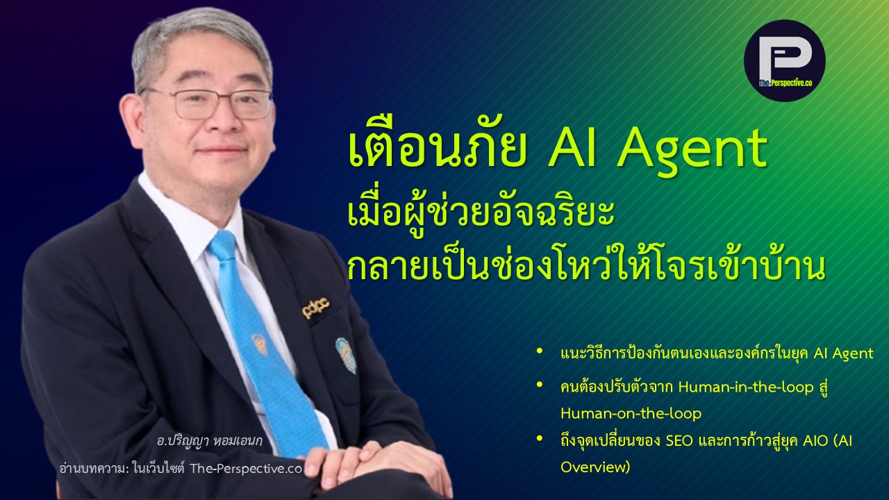 “อ.ปริญญา หอมเอนก” กรรมการผู้ทรงคุณวุฒิ ด้านการรักษาความมั่นคงปลอดภัยไซเบอร์ ในคณะกรรมการการรักษาความมั่นคงปลอดภัยไซเบอร์แห่งชาติ และกรรมการผู้ทรงคุณวุฒิในคณะกรรมการกำกับสำนักงานคณะกรรมการคุ้มครองข้อมูลส่วนบุคคล ได้ถ่ายทอดมุมบวกและมุมลบของ AI Agent ไว้อย่างละเอียด