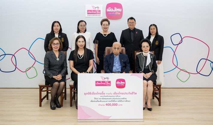 บริษัท เมืองไทยประกันชีวิต จำกัด (มหาชน) ร่วมกับ มูลนิธิเมืองไทยยิ้ม โดย คุณโพธิพงษ์ ล่ำซำ ประธานกรรมการ บริษัท เมืองไทยประกันชีวิต จำกัด (มหาชน) พร้อมด้วย คุณยุพา ล่ำซำ ที่ปรึกษามูลนิธิเมืองไทยยิ้ม ให้เกียรติเป็นประธานมอบเงินสนับสนุนการศึกษา จำนวน 400,000 บาท ให้แก่ สภาสังคมสงเคราะห์แห่งประเทศไทย ในพระบรมราชูปถัมภ์