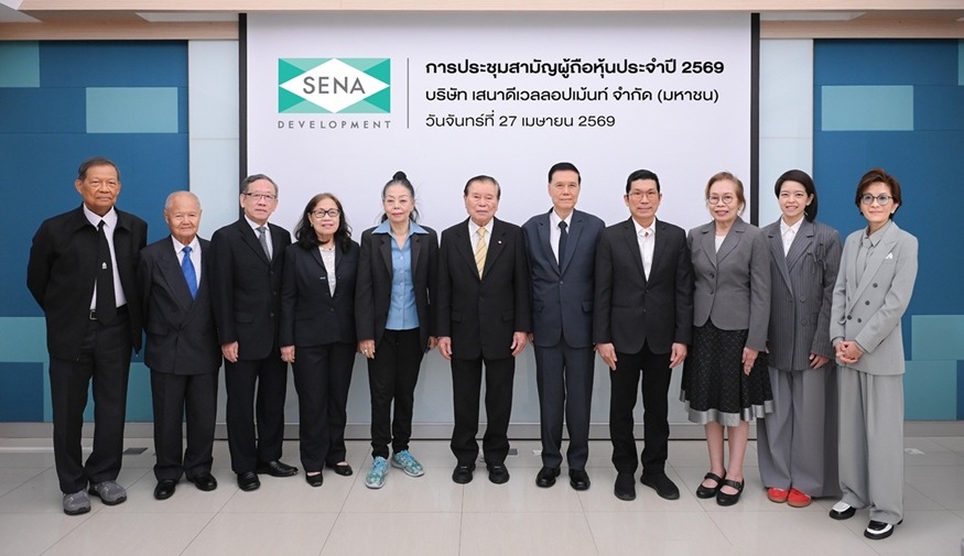 บริษัท เสนาดีเวลลอปเม้นท์ จำกัด (มหาชน) หรือ SENA จัดการประชุมสามัญผู้ถือหุ้นประจำปี 2569 ผ่านระบบสื่ออิเล็กทรอนิกส์ (E-AGM) ณ อาคารธัญลักษณ์ภาคย์ โดยมี นายวิเชียร รัตนะพีระพงศ์ ประธานกรรมการบริษัทและกรรมการอิสระ, ศาสตราจารย์ไชยยศ เหมะรัชตะ ประธานกรรมการตรวจสอบและกรรมการอิสระ และ ผศ.ดร.เกษรา ธัญลักษณ์ภาคย์ กรรมการและกรรมการผู้จัดการ พร้อมด้วยคณะกรรมการบริษัท