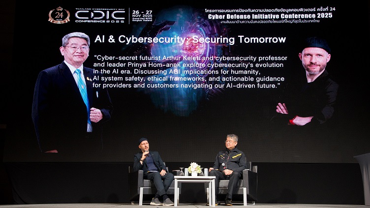 อ.ปริญญา หอมเอนก ผู้เชี่ยวชาญด้านความมั่นคงไซเบอร์และประธาน/ผู้ก่อตั้งบริษัท บริษัท เอซิส โปรเฟสชั่นนัล เซ็นเตอร์ จำกัด และบริษัท ไซเบอร์ตรอน จำกัดกล่าวแนะนำ Mr. Arthur Keleti ว่าเป็นผู้เชี่ยวชาญด้านความมั่นคงทางไซเบอร์ที่สั่งสมประสบการณ์มานานกว่า 30 ปี แม้ว่าเมื่อ 10 ปีที่แล้วเขาจะยังไม่เป็นผู้เชี่ยวชาญด้าน AI แต่เขาก็ได้ก้าวเข้าสู่ยุค AI เมื่อประมาณ 5 ปีที่ผ่านมา ในช่วงปี 2015-2016 เขาได้เขียนหนังสือโดยมีแนวคิดสำคัญว่า โครงสร้างข้อมูลที่ซับซ้อนทำให้เราไม่สามารถปกป้องตนเองในโลกไซเบอร์ได้ด้วยวิธีการแบบเดิม (Conventional Cybersecurity) และ จำเป็นต้องใช้ AI ในการปกป้องตนเอง โดยคุณอาเธอร์ ได้นำความรู้ วิสัยทัศน์ และประสบการณ์มาแชร์ในงาน CDIC 2025