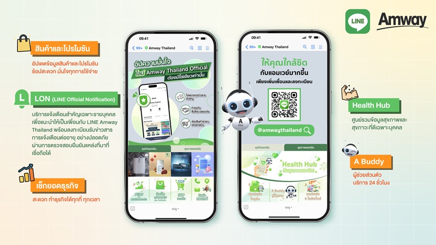 แอมเวย์ประเทศไทย มอบประสบการณ์ไลฟ์สไตล์สุดล้ำครั้งสำคัญ เพื่อให้ลูกค้าสามารถเข้าถึงการสื่อสารและช้อปปิ้งที่มากด้วยความสะดวก ปลอดภัย และครบครันยิ่งขึ้น ผ่านแอปพลิเคชัน LINE พัฒนาฟีเจอร์ที่ตอบโจทย์ทั้งการช้อปปิ้งตามไลฟ์สไตล์ วิเคราะห์ข้อมูลสุขภาพ และการทำธุรกิจอย่างครบวงจร ครอบคลุมผู้ใช้งานทั้งลูกค้า สมาชิก และนักธุรกิจแอมเวย์