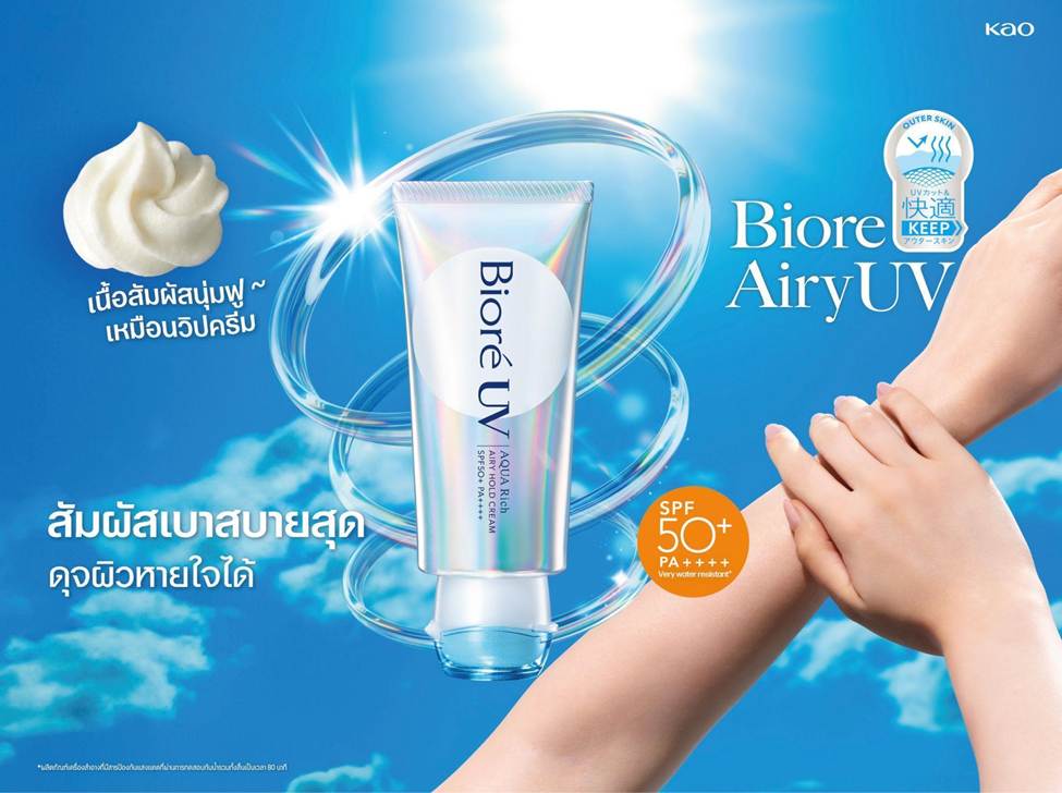 Biore UV Airy SPF50+ PA++++ วางจำหน่ายเฉพาะที่มัทสึโมโตะ คิโยชิ (Matsumoto Kiyoshi), ดอง ดอง ดองกิ (Don Don Donki), ซูรูฮะ (Tsuruha) และช่องทางออนไลน์ KAO Beauty & Personal Care อาทิ Shopee, Lazada, TikTok Shop และ Biore UV Mild SPF50+ PA++++ วางจำหน่ายที่ร้านค้าชั้นนำทั่วไป หรือเข้าไปดูข้อมูลผลิตภัณฑ์เพิ่มเติมได้ที่ biorethailand.com