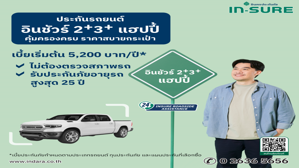 นายธีรวุฒิ สุธนะเสรีพร กรรมการผู้จัดการ บริษัท อินทรประกันภัย จำกัด (มหาชน) หรือ INSURE กล่าวว่า INSURE อินทรประกันภัย หนึ่งในสายธุรกิจหลักของไทยกรุ๊ป โฮลดิ้งส์ มุ่งสู่การเป็นสถาบันประกันวินาศภัยที่ขับเคลื่อนธุรกิจด้วยระบบเทคโนโลยีสารสนเทศ เพื่อสร้างมูลค่าสูงสุดให้องค์กรเติบโตอย่างยั่งยืนบนพื้นฐานของหลักธรรมาภิบาล ซึ่งในปีนี้บริษัทประกาศปรับจุดยืนทางการตลาดใหม่ ภายใต้แบรนด์ “INSURE อินทรประกันภัย” โดยข้อมูลจากสำนักงานคณะกรรมการกำกับและส่งเสริมการประกอบธุรกิจประกันภัย (คปภ.) พบว่า ประกันภัยรถยนต์ภาคสมัครใจประเภท 2+ และ 3+ มีสัดส่วนถึง 20.6% สะท้อนถึงความสนใจของผู้ใช้รถอีกกลุ่มหนึ่ง ในปีนี้บริษัทจึงได้ออกแบบผลิตภัณฑ์ประกันภัยรถยนต์ ชื่อว่า “ อินชัวร์ 2+ 3+ แฮปปี้” เพื่อเป็นทางเลือกใหม่ ที่ช่วยให้คนไทยสามารถลดค่าใช้จ่ายหากเกิดอุบัติเหตุบนท้องถนนได้ ควบคู่กับการได้รับสิทธิประโยชน์ที่มีความคุ้มค่า ราคาจับต้องได้ รองรับรถยนต์ที่มีอายุการใช้งานหลายปี รวมถึงบริการสุดพิเศษแบบครบวงจร