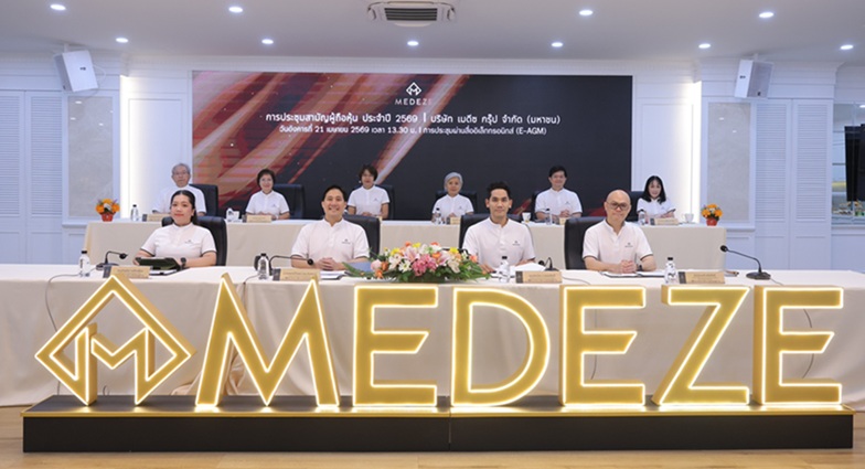 พร้อมด้วยคณะกรรมการบริษัท ฯ เข้าร่วมการประชุมสามัญผู้ถือหุ้นประจำปี 2569 ในรูปแบบการประชุมผ่านสื่ออิเล็กทรอนิกส์ (E-AGM) โดยที่ประชุมมีมติอนุมัติครบทุกวาระ พร้อมอนุมัติจ่ายเงินปันผลในอัตรา 0.08 บาทต่อหุ้น โดยกำหนดจ่ายในวันที่ 19 พฤษภาคม 2569 สะท้อนความเชื่อมั่นในศักยภาพการเติบโต และการดำเนินธุรกิจอย่างมั่นคงของ MEDEZE