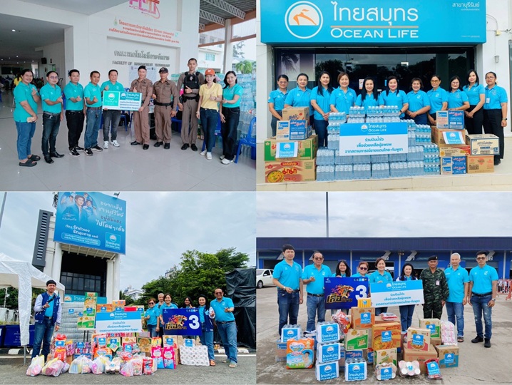 โดยพนักงานสาขา OCEAN LIFE ไทยสมุทร ในพื้นที่ ได้ร่วมแรงร่วมใจส่งมอบน้ำดื่มพร้อมสิ่งของเครื่องใช้จำเป็นทั้งอุปโภคและบริโภค ส่งถึงจุดรับบริจาคและจุดพักพิงชั่วคราวในพื้นที่ เพื่อบรรเทาความเดือดร้อนเบื้องต้นและเป็นกำลังใจให้กับเจ้าหน้าที่และผู้ได้รับผลกระทบ  OCEAN LIFE ไทยสมุทรขอยืนหยัดเคียงข้างพี่น้องคนไทยในทุกวิกฤติ พร้อมร่วมส่งต่อกำลังใจผ่านพลังความรัก เพื่อให้ทุกคนก้าวผ่านสถานการณ์นี้ไปด้วยกันอย่างเข้มแข็งและปลอดภัย