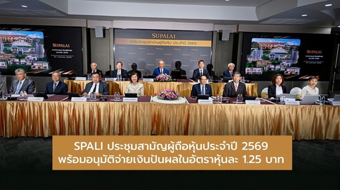 บริษัท ศุภาลัย จำกัด (มหาชน) โดย ดร.ประทีป ตั้งมติธรรม ประธานกรรมการบริหาร พร้อมด้วยคณะกรรมการบริษัท ร่วมประชุมสามัญผู้ถือหุ้นประจำปี 2569 เพื่อรายงานผลการดำเนินงานปี 2568 รวมถึงแผนการเติบโตของบริษัทปี 2569 ทั้งนี้ที่ประชุมสามัญผู้ถือหุ้นประจำปี 2569 ได้มีมติอนุมัติการจ่ายเงินปันผลสำหรับผลประกอบการงวดปี 2568 ให้แก่ผู้ถือหุ้น ในอัตราหุ้นละ 1.25 บาท