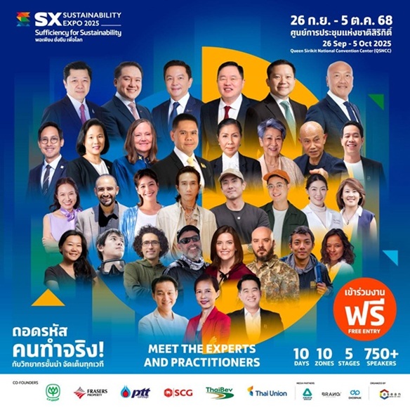 เมื่อโลกกำลังเผชิญความท้าทายครั้งใหญ่ วิกฤตด้านเศรษฐกิจ สังคม สิ่งแวดล้อมมีผลกระทบกับชีวิตมากขึ้น ถึงเวลาแล้วที่เราทุกคนต้องร่วมมือกัน Sustainability Expo 2025 (SX2025) มหกรรม ด้านความยั่งยืนที่ใหญ่ที่สุดในภูมิภาคอาเซียน ชวนฟังแนวคิดจาก “คนลงมือทำจริง” จากหลายวงการ ทั้งธุรกิจ สังคม สิ่งแวดล้อม และชุมชน ผู้เชี่ยวชาญกว่า 750 ท่าน ที่จะมาร่วมแชร์แนวคิด ประสบการณ์ และหาคำตอบใหม่ ๆ เพื่อ “ปรับตัว และร่วมมือ สู่ทางรอดในยุคโลกรวน”